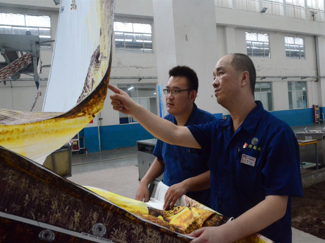 導讀:在公司科技產(chǎn)業(yè)園花布平網(wǎng)印制車間,化料、調(diào)漿、安裝刮刀……孫維生正忙著和同事們進行開機前的準備工作。