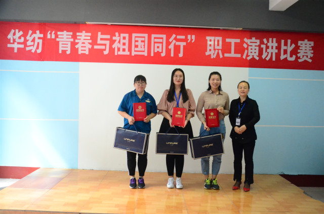 9月19日,公司舉辦了主題為“青春與祖國同行”的職工演講比賽活動,經過預賽、復賽程序進入最后決賽的九位選手,在比賽中用款款深情的講述,詮釋了華紡員工熱愛祖國、傾心事業的情懷。