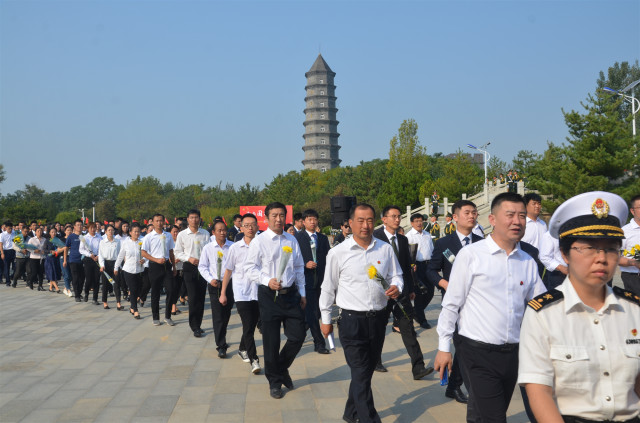 9月30日上午,濱州市2019烈士紀念日敬獻花籃儀式在渤海革命老區紀念園廣場舉行;公司員工代表在總經理閆英山帶領下,參加當天的敬獻花籃儀式并分別向烈士紀念墻敬獻花束。
