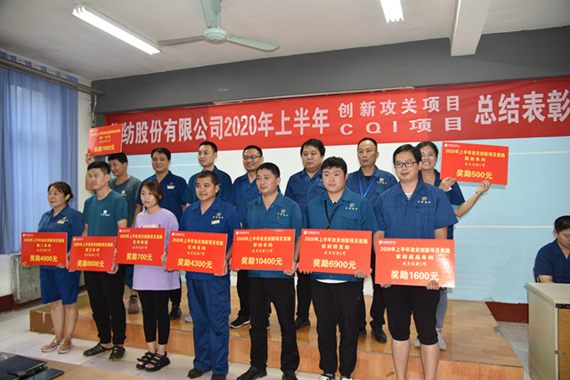 在CQI項目改進方面,公司展開CQI項目共計15項,在7項完成并受獎的項目中,4項超目標完成,實現(xiàn)收益303.8萬元。其中,花布車間完成并受獎的是“減少改漿,提高一次成功率”項目,面三車間完成并受獎的是“降低打底機疵布降等”項目、“提升5.11三防一等品率”項目,動力分公司完成并受獎的是“提高熱油機組經(jīng)濟發(fā)電量”項目,水處理一車間完成并受獎的是“提高生化處理降低藥劑成本”項目,水處理二車間完成并受獎的是“降低次氯酸鈉噸水處理費用”項目,熱力二車間完成并受獎的是“改善熱水平衡提升換熱效率”項目。