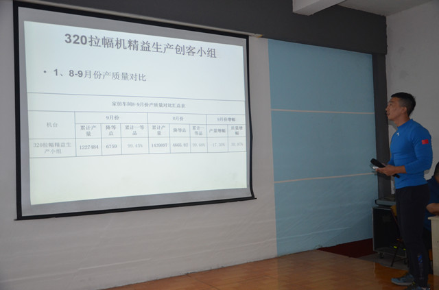 10月11日,公司家紡車間在職工大學(xué)大教室舉行了9月份精益生產(chǎn)總結(jié)會,對車間9月份的精益生產(chǎn)運(yùn)行情況進(jìn)行總結(jié),并對相關(guān)問題進(jìn)行剖析。各主要精益生產(chǎn)承包小組對自身的成績以及不足進(jìn)行總結(jié),并制定了后續(xù)改進(jìn)計劃和提升目標(biāo)。會議由車間技術(shù)主管鄭凱主持,車間主任王旭洲進(jìn)行了全面總結(jié)并對持續(xù)深化精益生產(chǎn)工作提出了新要求。