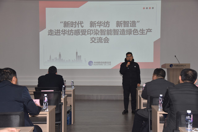 公司黨委副書記盛守祥代表公司,向與會領導及會員單位代表介紹了公司“退城進園”暨“智能綠色工廠建設項目”、升級印染全流程的智能制造等情況,并圍繞公司近年來大力推進企業轉型升級和新舊動能轉換工作,重點介紹了公司在智能智造、綠色生產方面的主要做法與經驗。公司副總工程師王國棟對公司近年來推動轉型升級及打造“智慧華紡”的整體發展成效,作了專題報告。