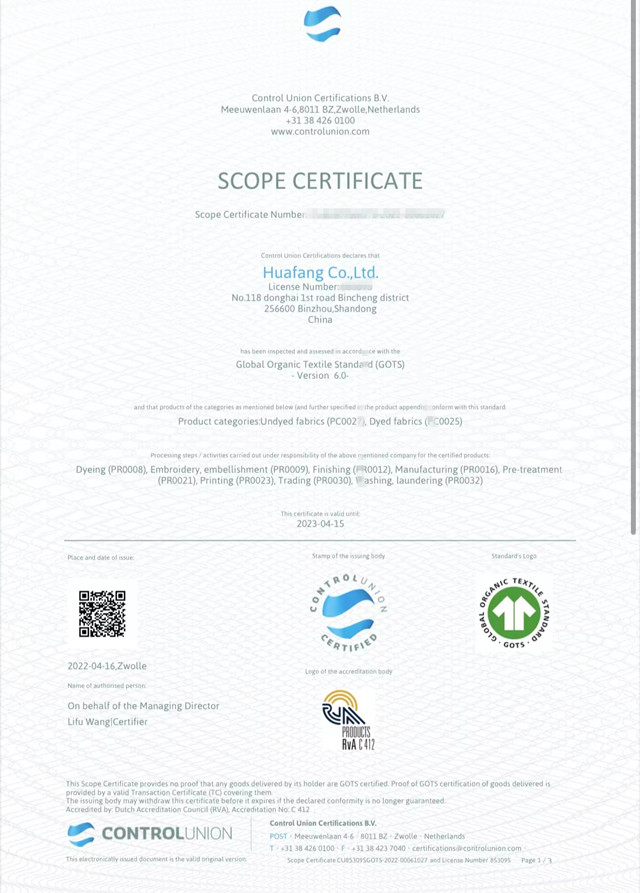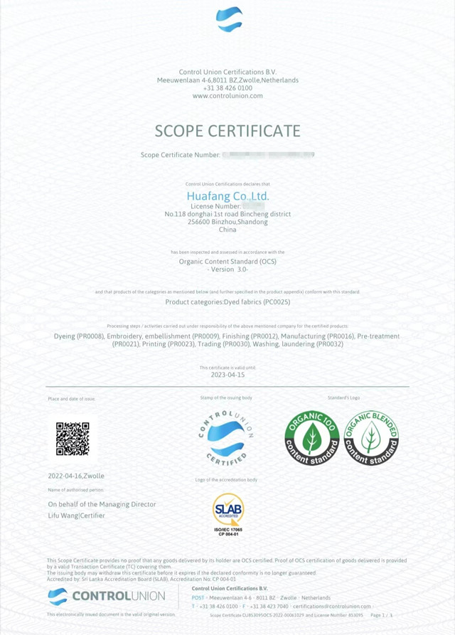 導讀:公司于3月份通過權威機構的現(xiàn)場審核,順利取得GOTS/OCS/GRS證書。