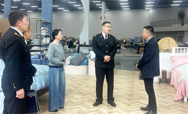 4月16日,濱州海關黨委書記、關長李光一行來公司參觀調研。濱州海關綜合業務一科科長劉金輝,綜合業務二科副科長朱士帥陪同調研。公司黨委委員、總經理閆英山,市場運營部綜合事務管理主任楊霞,華紡國際進口部經理韓黎明,服裝面料業務經理王新東,儲運部主管楊箐箐陪同。