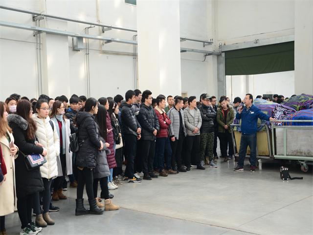 2月22日,濱州學院藝術學院黨總支副書記牛愛之、學生科科長秦玉國及240余名師生來到公司參觀交流,公司人力資源部、職工學院、團委等負責人,帶領師生們一行參觀了公司科技產業(yè)園的花二車間、制版中心、家紡成品車間等,并著重介紹了公司的發(fā)展狀況和前景。參觀結束后,同學們紛紛表示對公司整潔的工作環(huán)境、智能化的生產現(xiàn)場印象深刻。帶隊老師表示,華紡的發(fā)展令人鼓舞,希望回校后組織有就業(yè)意向的學生來公司實習、就業(yè)。