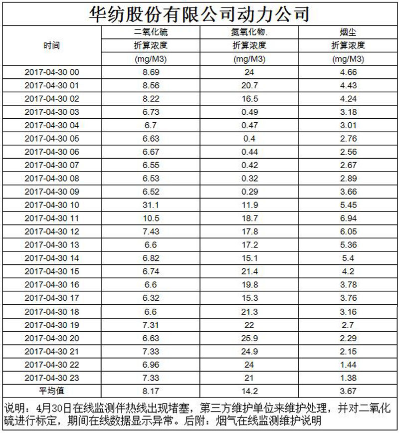 煙氣排放數據信息公開2017.4.30數據