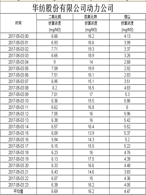 煙氣排放數據信息公開2017.5.3數據