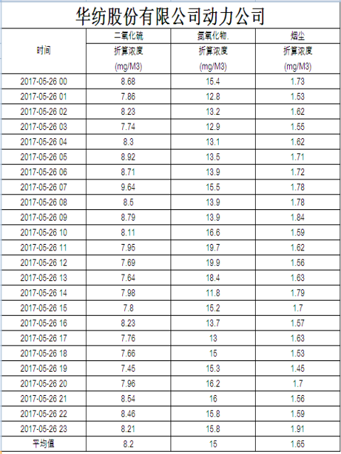 煙氣排放數據信息公開2017.5.26數據