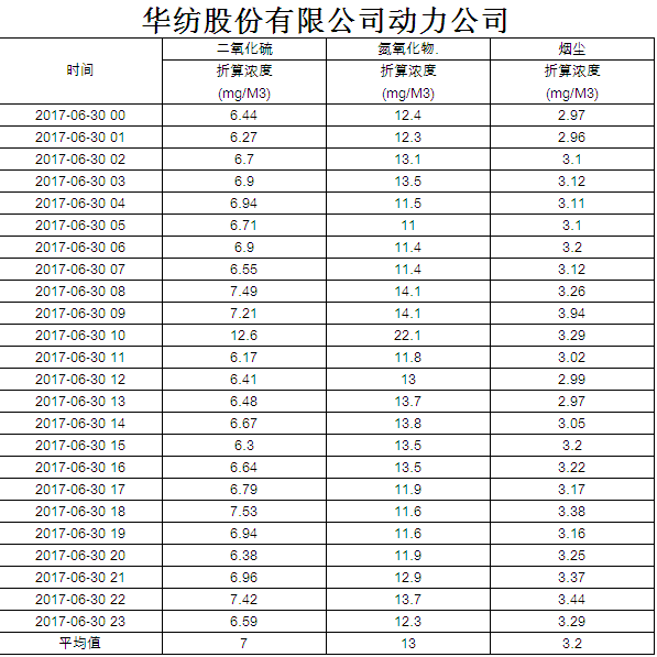 煙氣排放數(shù)據(jù)信息公開2017.6.30數(shù)據(jù)
