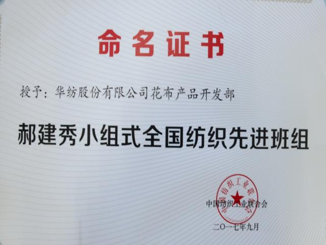 導讀:公司花布產品設計開發部榮獲郝建秀小組式全國紡織先進班組。