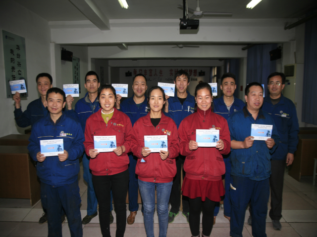 圖為公司向生產一線部分輪班(工段)長發放《手冊》時的情形。