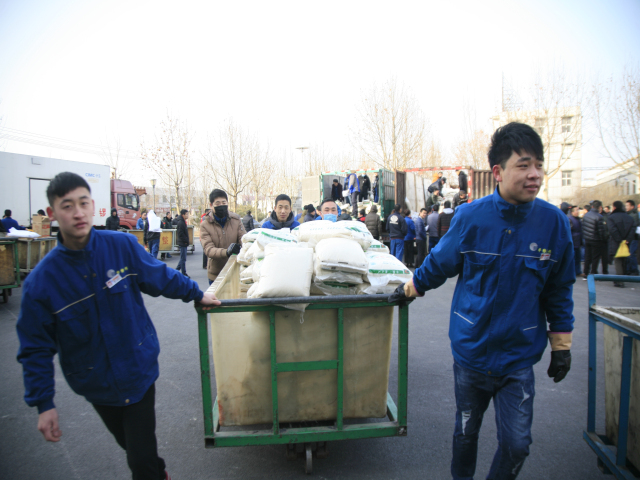 2月10日,公司主廠區廣場上非常熱鬧,員工以部門為單位,在這里領取公司為在崗員工和退休職工準備的豬腿、花生油、大米等“年貨”,以體現對廣大員工建設企業、奉獻事業的慰問之情。